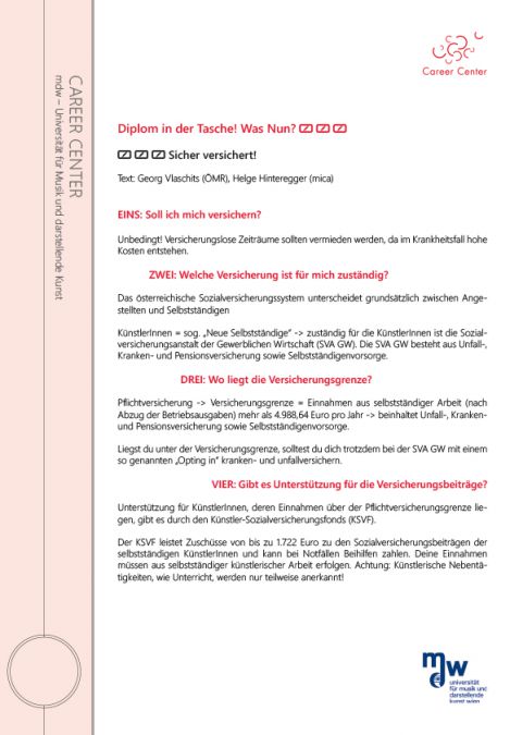 Hier finden Sie alles zu Fragen rund um die Sozialversicherung. Soll ich mich versichern? Welche Versicherung ist für mich zuständig? Wo liegt die Versicherungsgrenze? Gibt es Unterstützung für die Versicherungsbeiträge? Und wie gehe ich überhaupt vor?