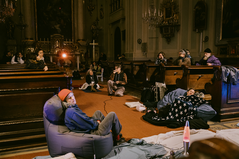 Das Duo ECHOES OF SOFTNESS kreiert ein Konzert, das nicht nur gehört, sondern auch gespürt, durchwandert und bewohnt werden will. Orgel, Elektronik und Stimme verschmelzen zu einem Klangkörper, der sich in den Kirchenmauern ausbreitet, sanft vibriert und sich in jede Falte des Raumes legt. Keine starren Reihen, kein stilles Sitzen – stattdessen Polster, Decken, Sitzsäcke, die sich wie Inseln im Raum verteilen, ein weiches Territorium, das zur Bewegung, zum Liegen, zum Verweilen einlädt. Die Kirche - nicht nur als sakraler Raum, sondern als lebendige Spielwiese, als Ort der Offenheit und des körperlichen Erlebens zeitgenössischer Kunst.