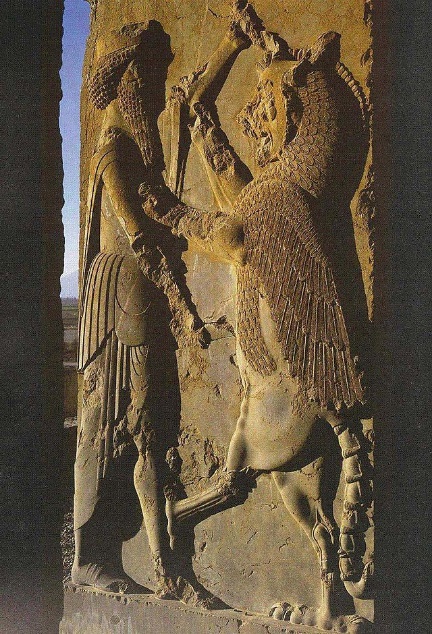 The carpet was inspired from this (Persepolis). The man killing the beast.