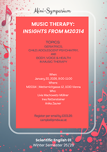 In a joint research project, the Vienna Institute for Music Therapy (WIM) and the WZMF - Vienna Centre for Music Therapy Research would like to record the developments, changes; and expansions of the Vienna School of Music Therapy and update the understanding of important basic building blocks and practice-relevant basic theories.