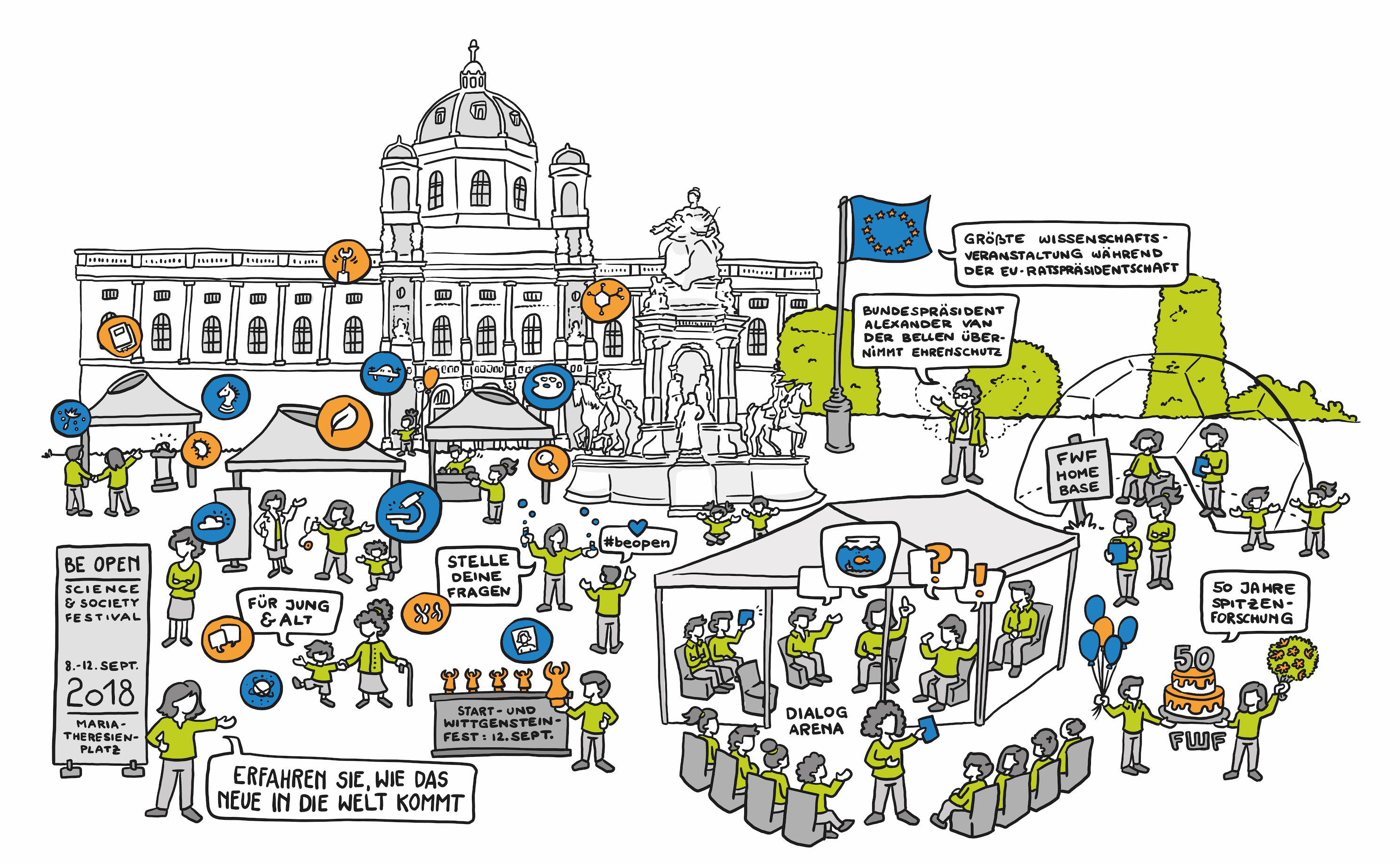 Anlässlich des Jubiläums lädt der FWF zusammen mit Partnern aus Wissenschaft und Forschung vom 8. – 12. September 2018 zum "BE OPEN – Science & Society Festival" in der Wiener Innenstadt.