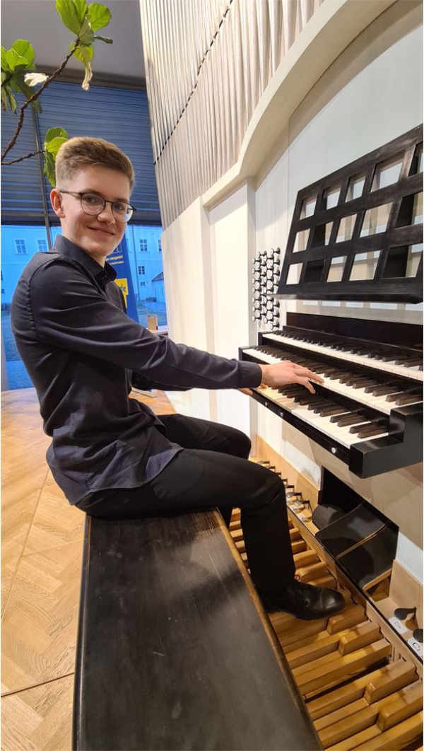 David besucht den Vorbereitungslehrgang Orgel bei Zita Nauratyill.
