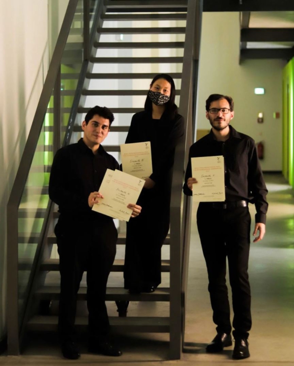 Das Ensemble N, bestehend aus den mdw-Studierenden Paolo Vuono (Violine) und Irini Liu (Violoncello) sowie dem mdw-Absolvent Luca Lavuri (Klavier), hat den Boris-Pergamenschikow-Preis für Zeitgenössische Kammermusik 2022 erhalten. Außerdem wurde das Ensemble mit dem Sonderpreis für einen Kompositionsauftrag über 3.000 Euro ausgezeichnet.