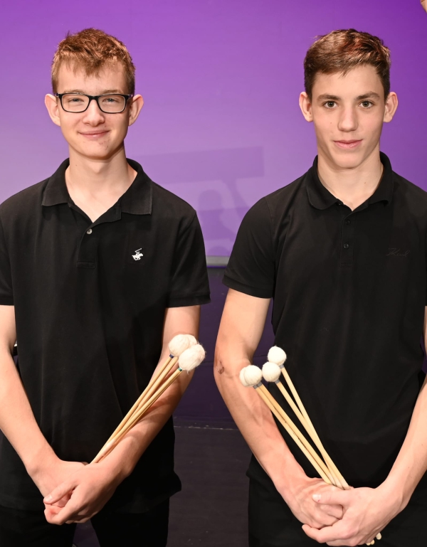 Jakob besucht den Schlaginstrumente Vorbereitungslehrgang und Benjamin den Kurs für Hochbegabte (Schlaginstrumente). Beide studieren bei Josef Gumpinger.