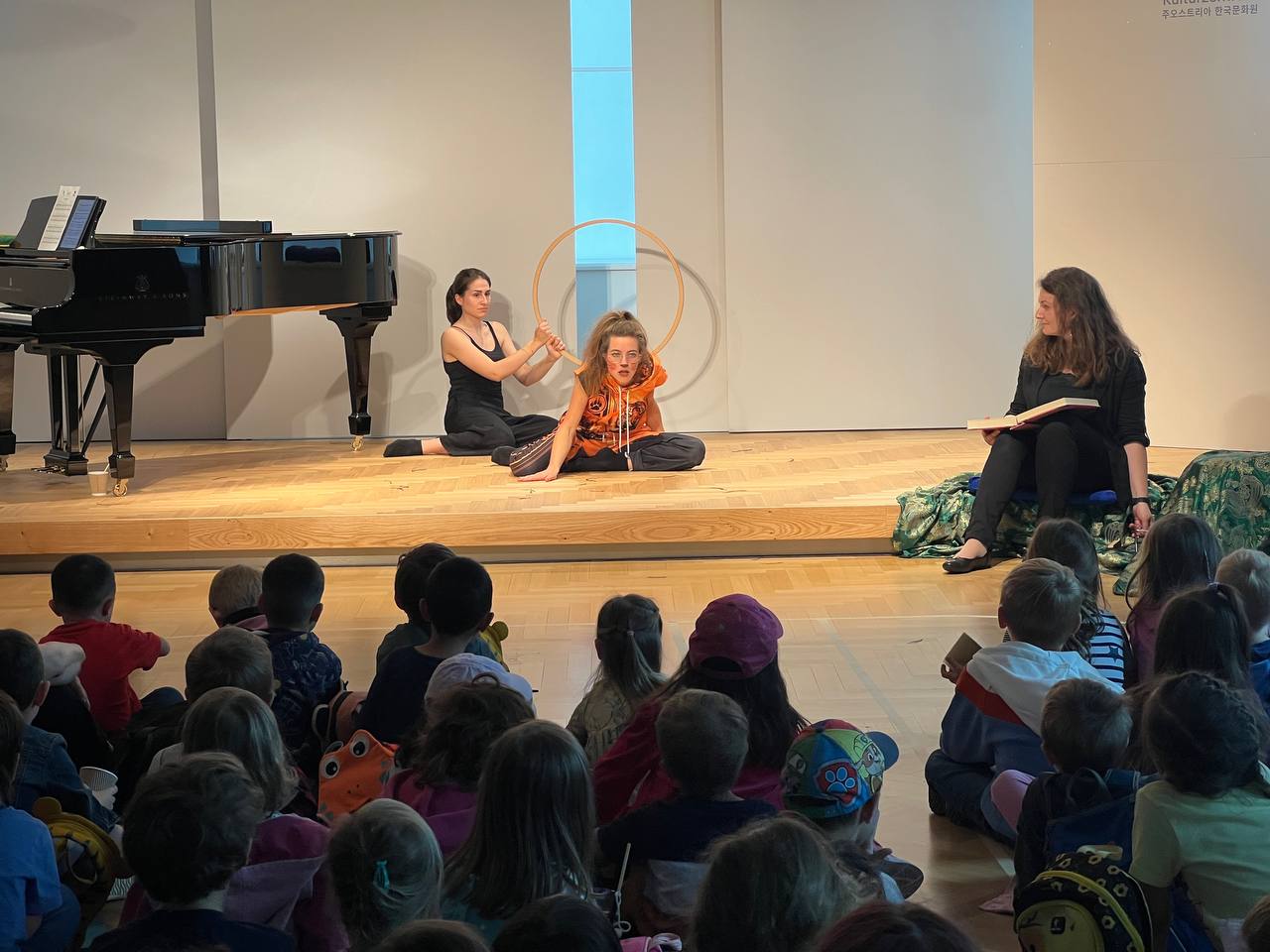 Im Rahmen der bis Mitte 2024 laufenden Kooperation des Korea Kulturzentrums mit der Universität für Musik und darstellende Kunst Wien – mdw beschreiten die beiden Institutionen innovative Wege. Unter dem Motto „the future meets the stars of tomorrow“ präsentierten hochbegabte junge koreanische Studierende des mdw talent lab gemeinsam mit Studierende der mdw Musikvermittlung im Korea Kulturzentrum das traditionelle koreanische Märchen „Der Tiger und die Persimone“ vor Kindern. Im Zuge der Inszenierung wurden Ausschnitte aus Stücken von Frederic Chopin, Franz Liszt, Felix Mendelssohn Bartholdy, Pjotr Iljitsch Tschaikowski und Antonio Vivaldi konzertant aufgeführt.