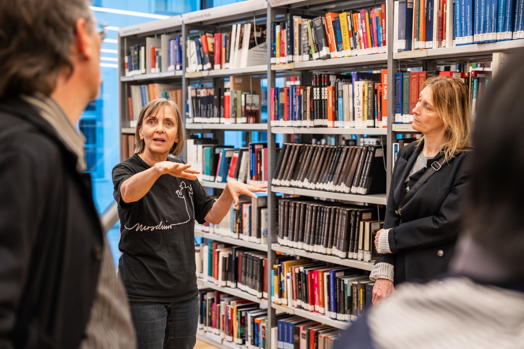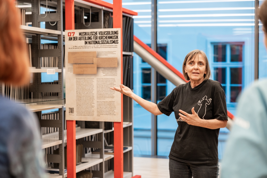 Den Beginn der „Forschungstour“ stellte die mdw Bibliothek dar: Forscher_innen des Archivs der mdw und des Instituts für Musikwissenschaft und Interpretationsforschung führten an dieser Station durch die Ausstellung „Klingende Zeitgeschichte in Objekten“, die sich mit der Geschichte der mdw im Austrofaschismus, Nationalsozialismus und Postnazismus auseinandersetzte. Außerdem gab es in der Bibliothek ein Konzert des Instituts für Musikwissenschaft und Interpretationsforschung anlässlich des 100. Geburtstages des Komponisten Luigi Nono.