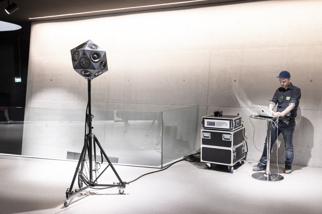 Das neueste und preisgekrönte Gebäude Future Art Lab beherbergte ebenfalls mehrere Stationen. Gleich im Foyer gab es die Station „ÆSR Sound Projection Lab – Präsentation klangraumzeitlicher Skulpturen“ des Artistic Research Centers der mdw. Das Center zeigte außerdem im Foyer des Klangtheaters die Station „Spirits in Complexity – Making kin with experimental music systems“ eine live bespielte Raum-Installation, die Einblick in musikalische Interaktionsformen gab.