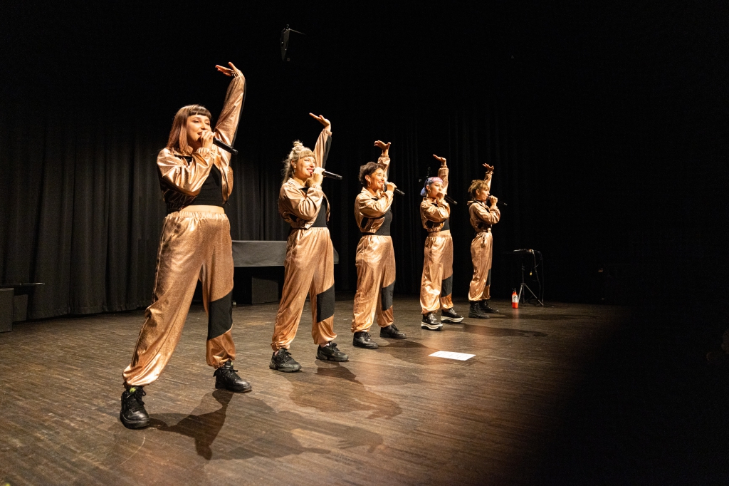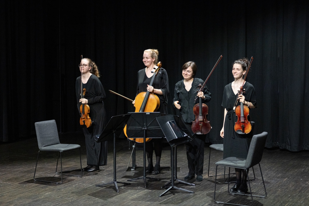 Im „Klangtheater“ fanden Besucher_innen vielfältige Stationen: Die Frauen-A Capella-Band Beat Poetry Club des Instituts für Popularmusik lädt zu Beginn zum Mitsingen ein. Danach ging es mit der Frage „Wie gestalte ich ein klassisches Konzert für Jugendliche?“ und dem Saitenschneider Quartett des Instituts für musikpädagogische Forschung und Praxis weiter.