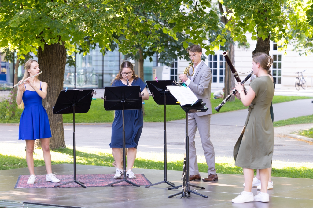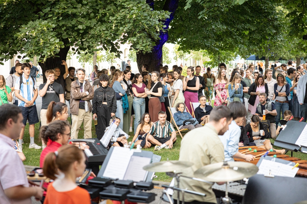 Ab 16 Uhr starten wir mit einem vielseitigen musikalischen Programm in die Sommernacht. Neben der Drumline der mdw, dem mdw-Kinderchor und Kammermusik-Ensembles kann sich das Publikum ebenso auf eine Mischung aus Latin, Jazz, Funk & Pop freuen. Auch die big.mdw.band ist heuer mit einem sicherlich fulminanten Aufritt wieder mit dabei!