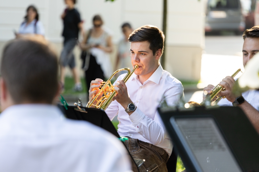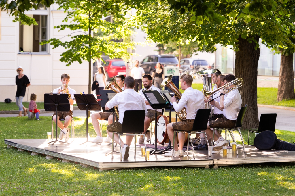 Die frisch gegründete "Landstraßen Musig“ vereint acht Studenten der mdw und der MUK, die mit traditioneller böhmischer Blasmusik, Eigenkompositionen und modernen Arrangements auf höchstem Niveau die Blasmusikwelt mitgestalten. Nach einer intensiven Studiosession freuen wir uns, live vor Publikum zu spielen.