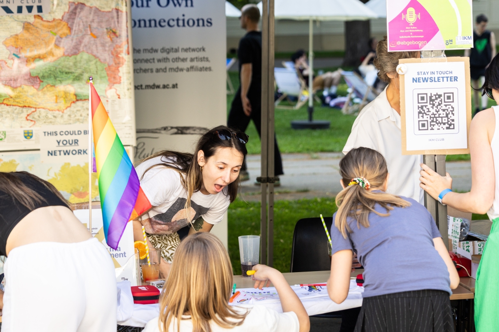 Für das leibliche Wohl ist mit Grillwürstel, Kuchen und erfrischenden Getränken gesorgt. Und wer die besondere Atmosphäre festhalten möchte, kann in der mdw-Photobooth lustige Schnappschüsse machen und als Erinnerung mit nach Hause nehmen.