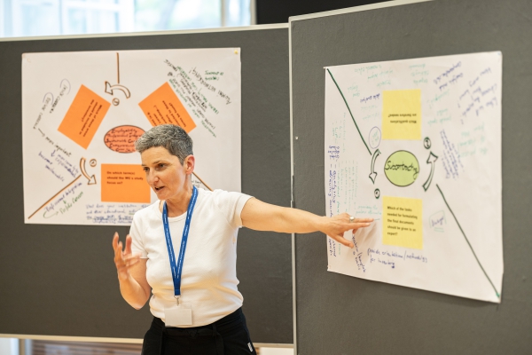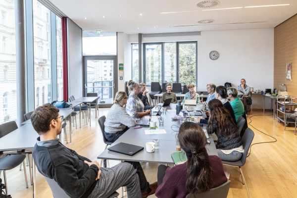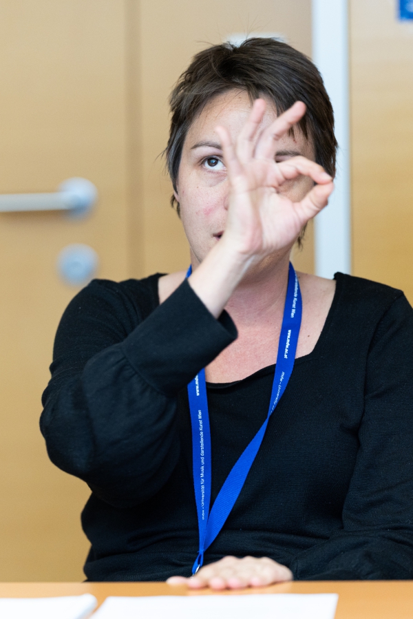 Der Ausschuss für das Arbeitspaket 3 hatte bereits mehrere Online-Sitzungen abgehalten, in denen er Kriterien für die einzelnen Formate aufstellte und übergreifende Themen und Fragen identifizierte. Nun hatten sie die Gelegenheit, sich persönlich zu treffen und diese Themen in einer Reihe von vertieften Diskussionen zu behandeln. Während der erste Tag des Treffens der Teambildung diente (mit Aktivitäten wie einer Campus-Tour, einem informellen Meet & Greet mit den mdw-Mitarbeitenden und einem gemeinsamen Abendessen), war der zweite Tag von intensiver und konzentrierter Arbeit geprägt.