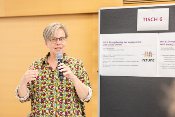 Bei einer Informations-Veranstaltung am 12. Juni 2024 informierten bereits involvierte mdw-Kolleg_innen über aktuelle Entwicklungen in der Allianz. Sie freuten sich besonders darauf, mit den Teilnehmenden Ideen und Gedanken zu IN.TUNE zu diskutieren.