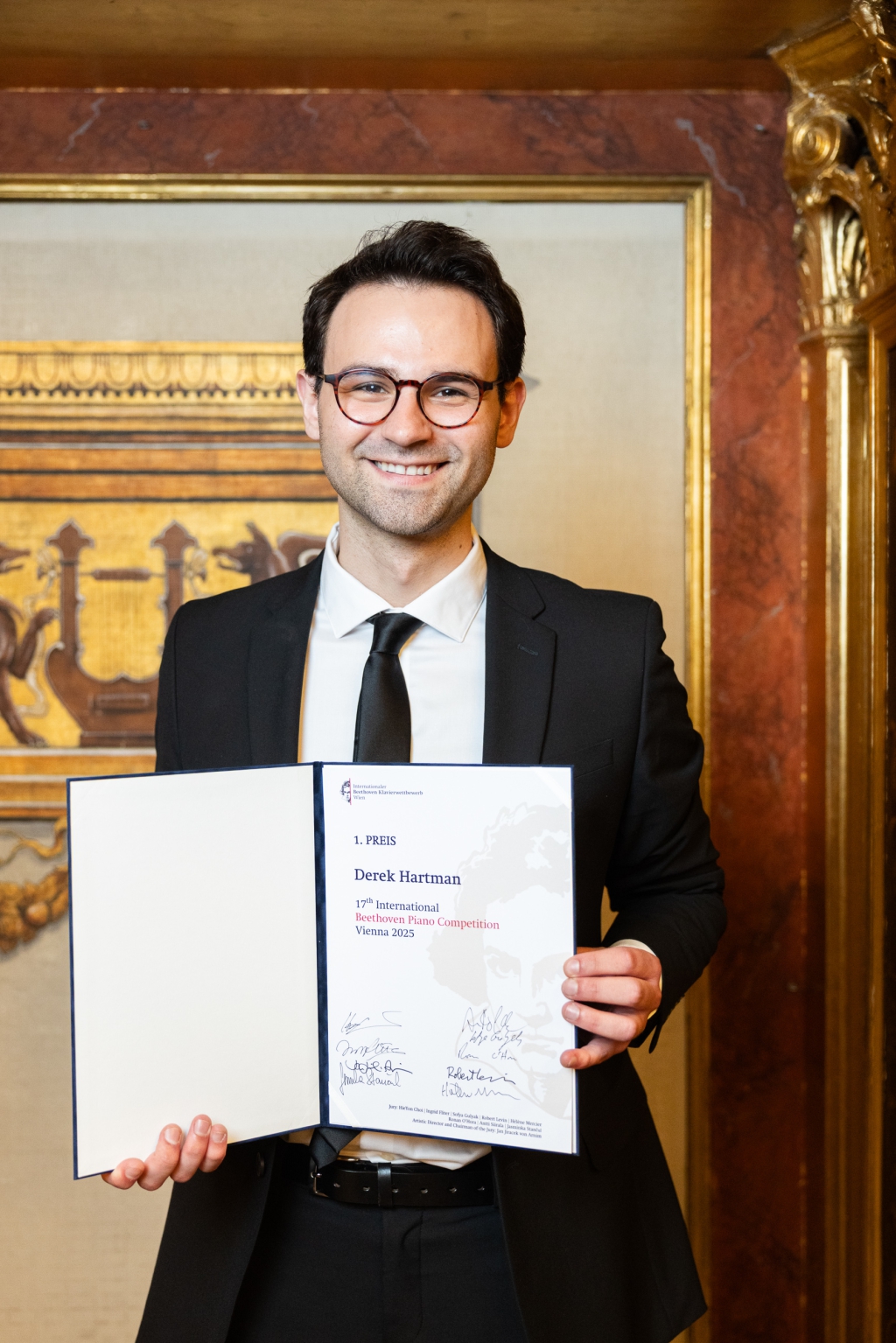 Beim Finale am 24. Mai 2025 im Goldenen Saal des Wiener Musikvereins wurde Derek Hartman aus den USA zum Sieger des 17. Internationalen Beethoven Klavierwettbewerbs gekürt.