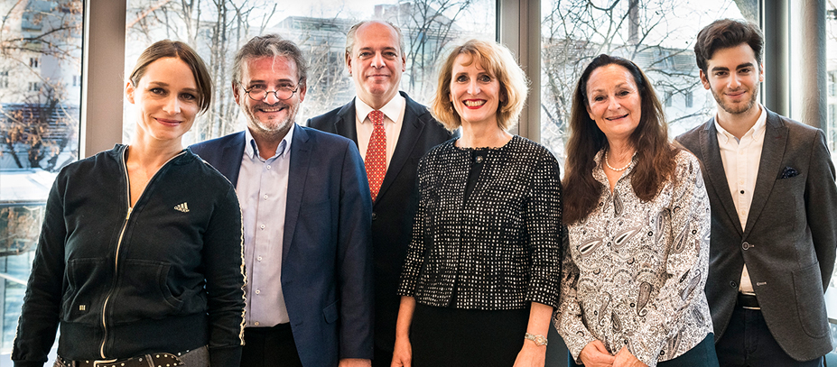 © Marcell Nimführ v.l.n.r.: Alumna Mirjam Unger, Prof. Johannes Meissl, Vizerektor für Außenbeziehungen Christian Meyer, Rektorin Ulrike Sych, Prof.in Ursula Hemetek, mdw-Student Emmanuel Tjeknavorian
