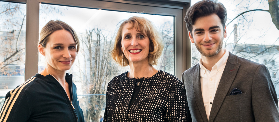 © Marcell Nimführ v.l.n.r.: Alumna Mirjam Unger, Rektorin Ulrike Sych, mdw-Student Emmanuel Tjeknavorian