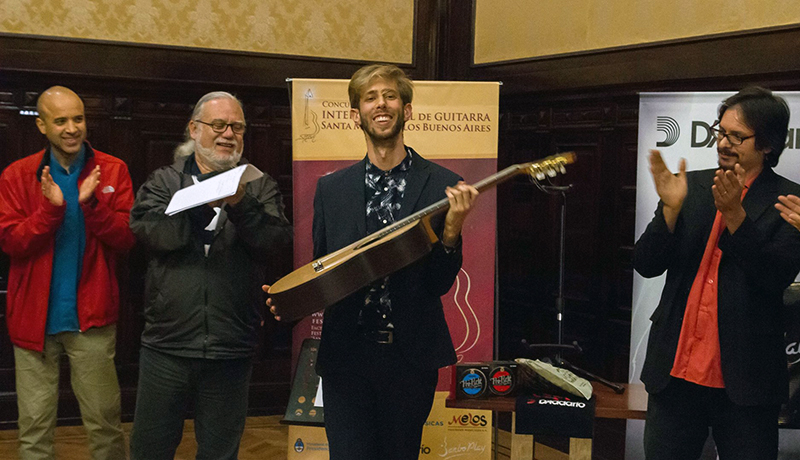 Maciej Lyczek (Mitte) hat am 6. Oktober beim V. Concurso y Festival Internacional de Guitarra "Santa María de los Buenos Aires" 2017 im Centro Cultural Kirchner in Buenos Aires den 1. Preis gewonnen.