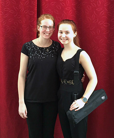 Theresa Prem (rechts) hat beim Internationalen Flötenwettbewerb "Flautiada" in Bratislava im Mai 2017 teilgenommen. Begleitet wurde sie von ihrer Korrepetitorin Emma Schaffer. Dabei gewann Theresa in ihrer Wertungsgruppe, die in 2 Runden mit über 20 TeilnehmerInnen stattfand, den 2. Preis.