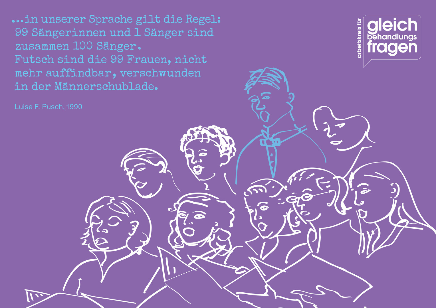[...] in unserer Sprache gilt die Regel: 99 Sängerinnen und 1 Sänger sind zusammen 100 Sänger. Futsch sind die 99 Frauen, nicht mehr auffindbar, verschwunden in der Männerschublade (Luise F. Pusch 1990)