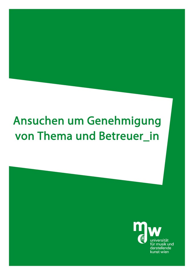 Die Formulare zum Ansuchen um Genehmigung von Thema und Betreuer_in können Sie auf der Website des StudienCenters herunterladen.