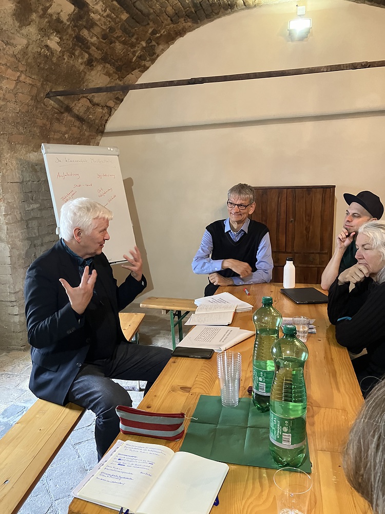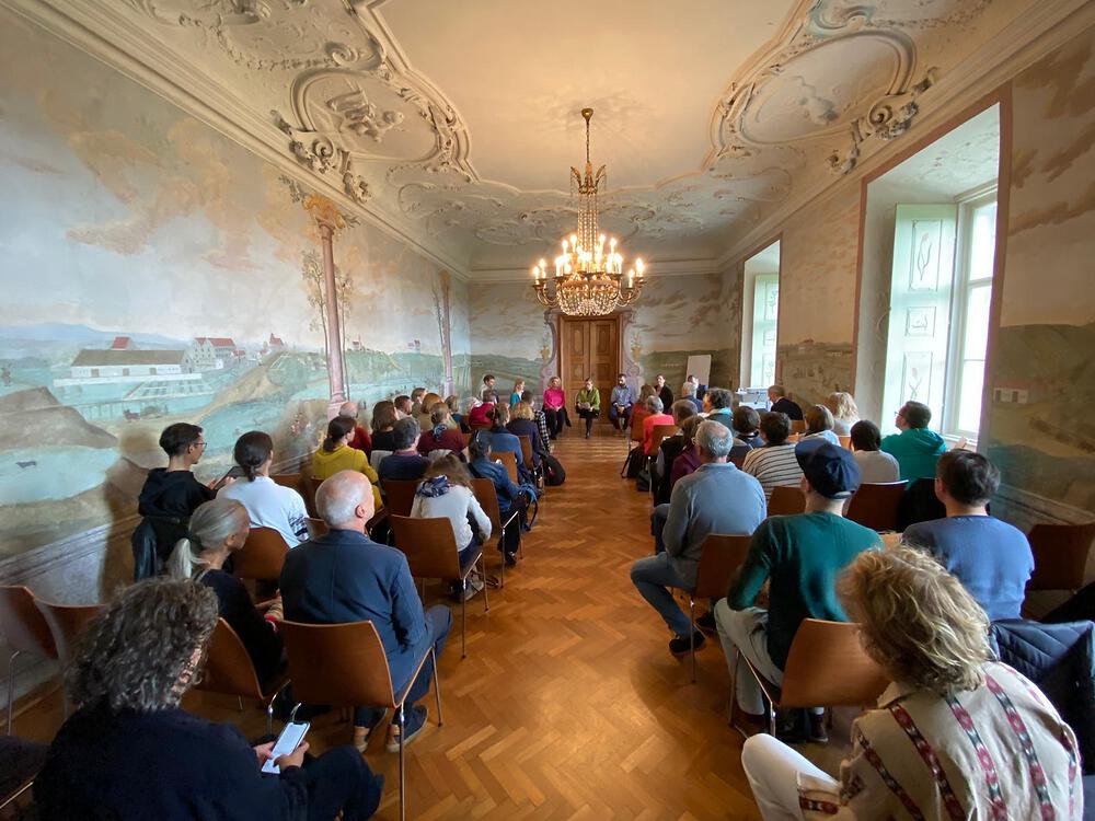 Nach den kurzen Berichten aus den Gesprächsrunden konnten wir alle wieder ein sehr köstliches Mittagessen im Hof des Schlosses genießen und uns im Anschluss daran an verschiedenen, praxisorientierten Workshops weiterbilden: