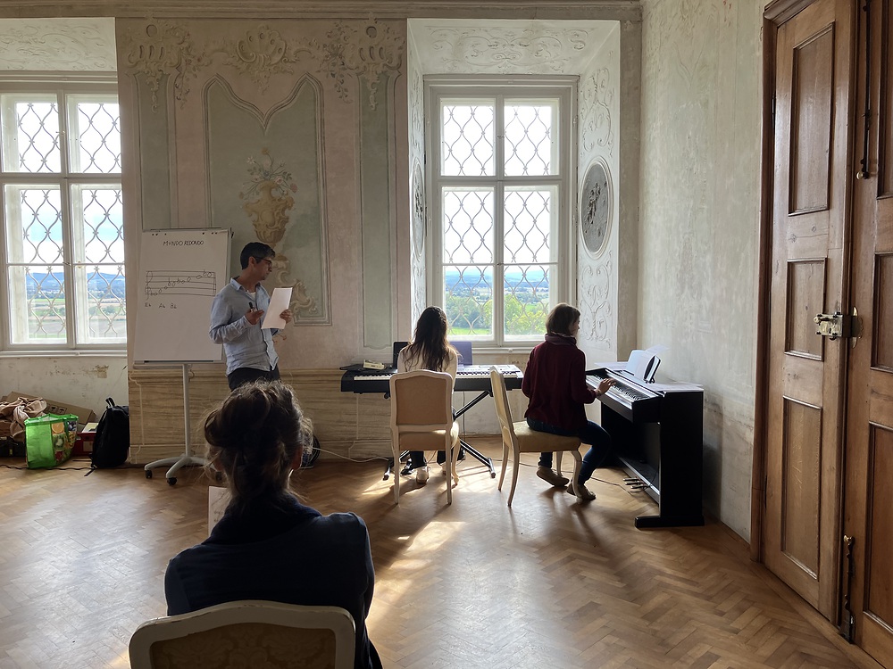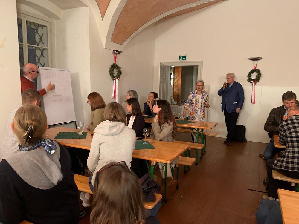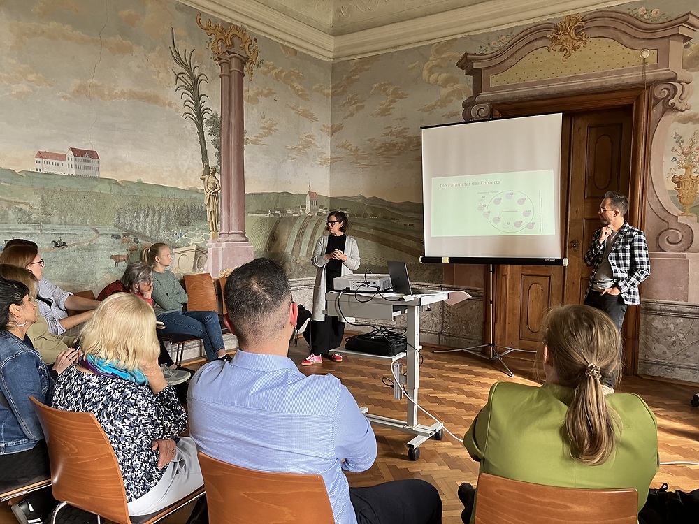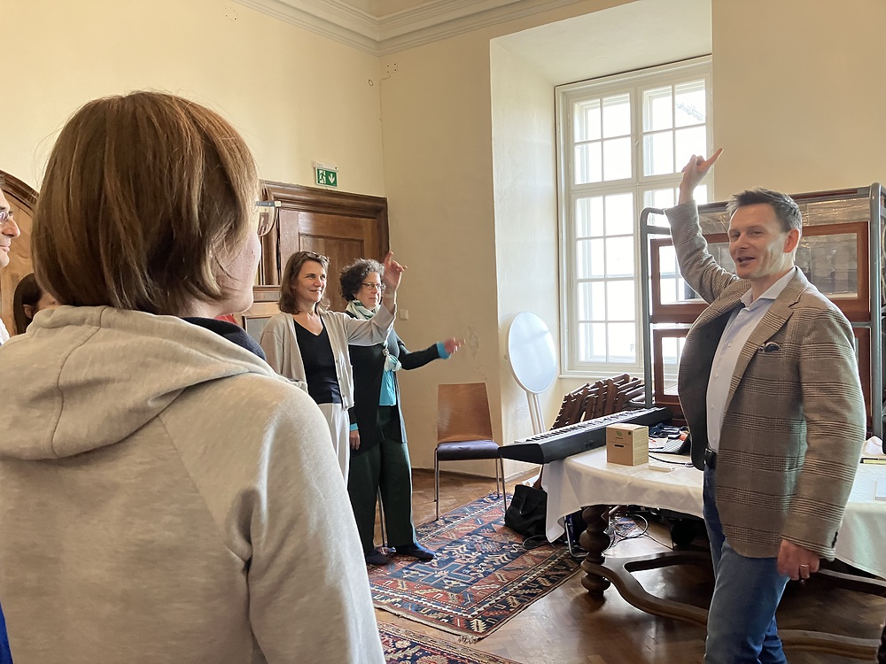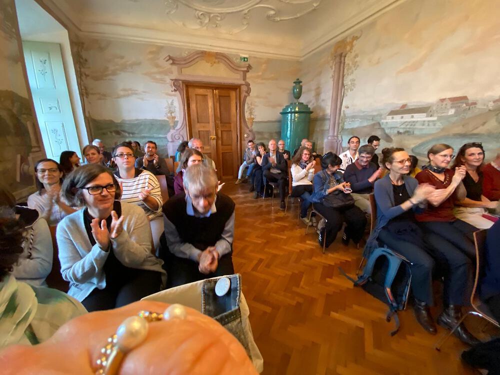 Ein Samstag Ende September um 8.30 Uhr in der Früh beim Eingang zur mdw Anton-von-Webern-Platz: Wie jedes Jahr treffen sich ca. 45 Kolleg_innen, um mit dem Bus ins schöne Stetteldorf zu fahren, da dort zum 15. Mal (!) das Treffen des Alumni-Netzwerks Musikpädagogik Wien stattfindet. Dieses Jahr stand das Thema „Zukunft Musikschule – Perspektiven in Studien und im Berufsfeld“ im Mittelpunkt und die Tagung war bereits Anfang August zur Gänze ausgebucht. Nach dem Eintreffen aller Teilnehmer_innen auch Rektorin Ulrike Sych war den ganzen Tag dabei - wurde zu Beginn des ersten Plenums an unsere Gastgeber Brigitte und Georg Stradiot die Ehrenmitgliedschaft für ihre unermüdliche Unterstützung und Bereitstellung der schönen Räumlichkeiten verliehen, festlich umrahmt von einem eigens dafür geprobten Kanon.