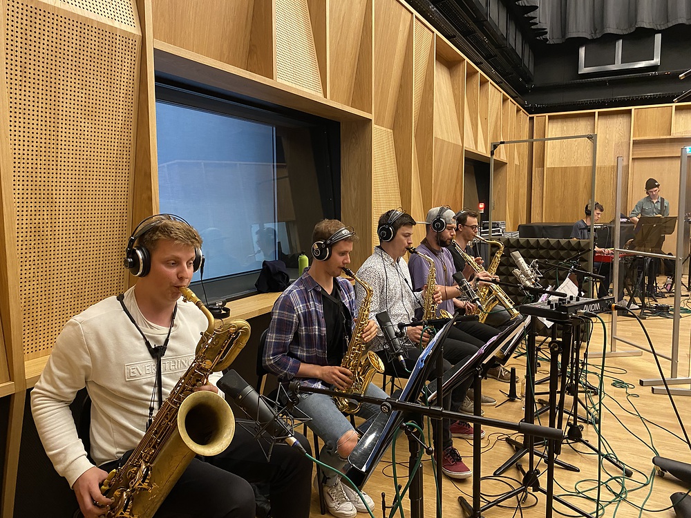 The big.mdw.band has been under the direction of Markus Geiselhart since the winter semester 2013. Since then, the big band of the mdw – University of Music and Performing Arts Vienna, which is part of the ipop – Department of Popular Music, has each year prepared a programme of traditional jazz in the winter semester and a modern programme in the summer semester. The big.mdw.band is a course that can be attended not only by students of the ipop but also as an elective subject by those studying music education and performance at the mdw. Since the 2016 summer semester, the ipop has collaborated closely with the mdw’s Department of Composition Studies and Music Production, enabling the big band to record a selection from its current programme at the end of each semester. These studio sessions offer the participating music students the opportunity to acquire important studio skills for their professional careers. Students in the music production programme, in turn, are able to gain important practical experience in recording a large ensemble like a big band. Recordings from these studio sessions are now for the first time being made available to a wider audience in the form of a CD.
