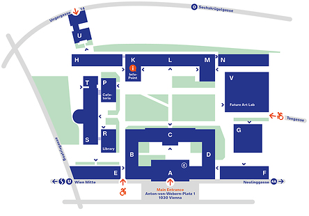 In an emergency, a wheelchair can be borrowed at short notice at the mdw campus (1030 Vienna). The wheelchair can be obtained from the school caretakers of building S ("Alte Anatomie", extension -6325).