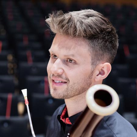 Der junge Musiker ist mehrfacher erster Preisträger bei Prima la Musica. Seit 2021 ist er Mitglied der Akademie der Wiener Philharmoniker. Orchestererfahrung sammelte er u.a. bei den Wiener Symphonikern und in der Wiener Staatsoper. An der mdw studiert er bei Martin Mühlfellner.