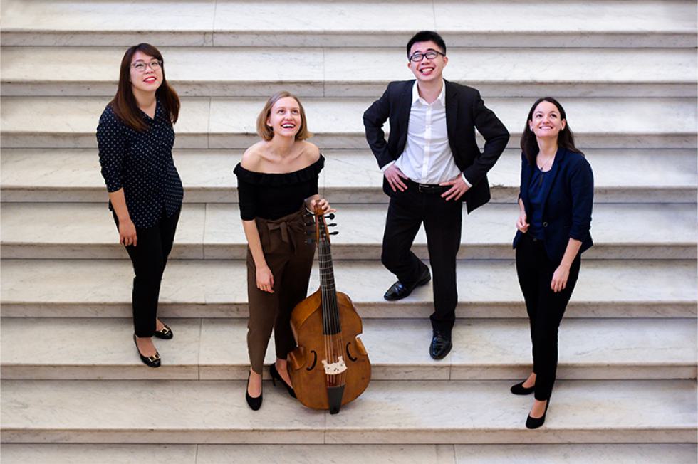Das ensemble freymut wurde Anfang 2018 von vier jungen Musiker_innen der Wiener Musikuniversitäten gegründet. Um Musik in ihrer Vollkommenheit wiedergeben zu können, beschäftigen sich Sobin Jo (Cembalo), Elisabeth Vestemian (Traversflöte), Ching-Yao Wang (Traversflöte) und Maria Danneberg (Viola da Gamba) intensiv mit dem Studium historischer Musikquellen, der Literatur und der bildenden Kunst des Barock. Darüber hinaus versuchen die Musiker_innen in ausgewählten, oft interdisziplinären und interaktiven Projekten Brücken zwischen vergangenen Epochen, heutiger Kunstproduktion und neuen Konzertformaten zu schlagen. Neue Wege außerhalb des Konzertsaals beschreitet das Ensemble zum Beispiel in einer Zusammenarbeit mit dem Schauspieler Florian-Raphael Schwarz. Das Musikvideo Reflections2020, in dem Barockmusik und Schauspiel in einem musikalisch-visuellen Kunstwerk aufeinandertreffen, ist ein Pilotprojekt in diesem Zusammenhang. In seinem aktuellen Projekt "The Future of the Past - Hommage à Sara Levy" verbindet das ensemble freymut historisch im 18. Jahrhundert angesiedelte Kompositionen mit zeitgenössischer Musik. "Dülons Welt" nimmt die spannende Lebensgeschichte des blinden Flötisten Friedrich Ludwig Dülon (1769 - 1826) zum Ausgangspunkt für einen musikalisch-sinnlichen Parforceritt durch Dunkelheit, Klangerlebnis und Licht.
