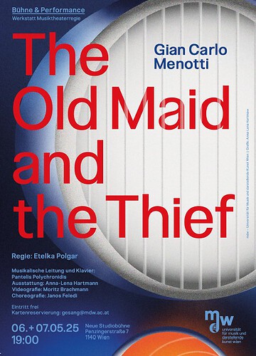 Unsere nächste Produktion des Studiengangs Musiktheaterregie ist The Old Maid and the Thief von Gian Carlo Menotti.