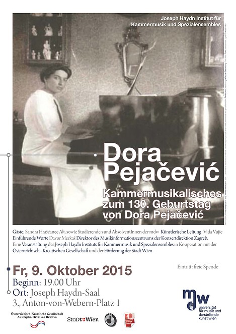 Eine Veranstaltung des Joseph Haydn Instituts für Kammermusik und Spezialensembles in Kooperation mit der Österreich - Kroatischen Gesellschaft und der Förderung der Stadt Wien sowie der Koordinationsstelle für Frauenförderung und Gender Studies der mdw