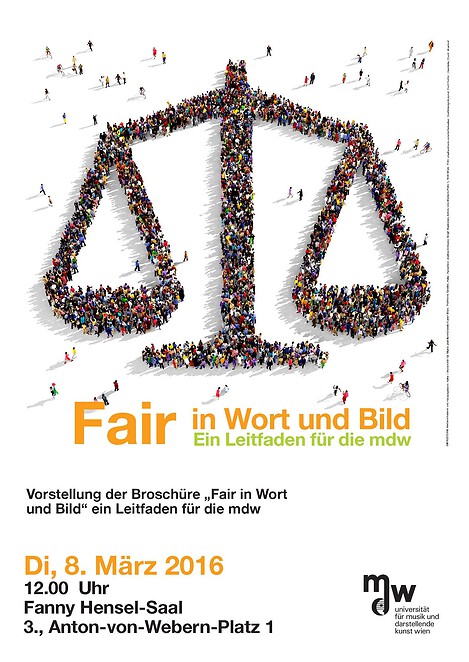 Fair schreiben, sprechen und ins Bild setzen…was ist denn das, werden Sie sich vielleicht fragen. Fair ist es, wenn alle Personen, die gemeint sind, sich auch angesprochen fühlen können. „Die Universität für Musik und darstellende Kunst Wien steht für Gleichbehandlung, Fairness und Respekt gegenüber allen Universitätsangehörigen. Daher sollte gendergerechtes Formulieren an der mdw Standard sein.“ (Rektorin Ulrike Sych).