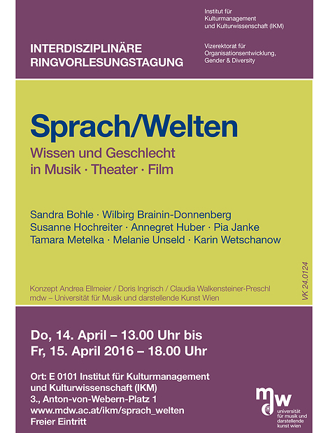 Veranstalter_innen Vizerektorat für Organisationsentwicklung, Gender & Diversity, Stabstelle für Gleichstellung, Gender Studies und Diversität der mdw und Arbeitskreis für Gleichbehandlungsfragen