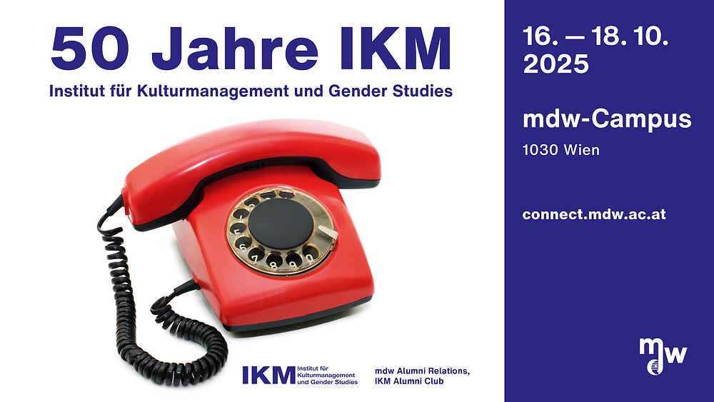1975 als „Institut für kulturelles Management, künstlerische Betriebsführung und Öffentlichkeitsarbeit“ gegründet, wirkt das IKM heute interdisziplinär in den Fachgebieten des Kulturmanagements, der Cultural Institutions Studies, der Kulturpolitikforschung und der Kulturwissenschaft – und bot in den vergangenen 20 Jahren zudem einen Ort zur Entwicklung des Fachgebiet der Gender Studies an der mdw.