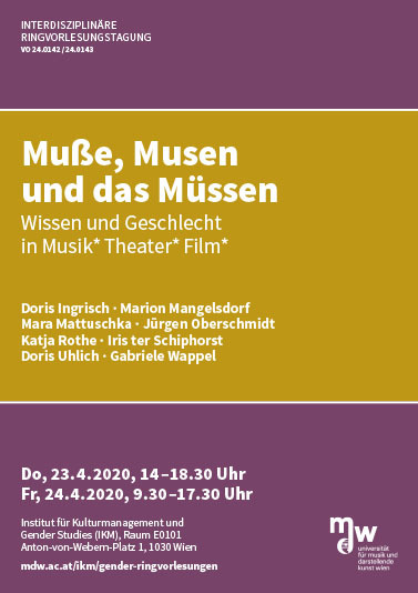- 2021: "Muße, Musen und das Müssen. Wissen und geschlecht in Musik*Theater*Film*"