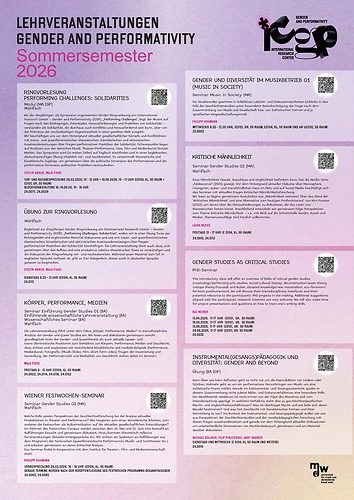 Die Lehrveranstaltungen des International Research Center Gender and Performativity finden Sie unter folgendem Link.