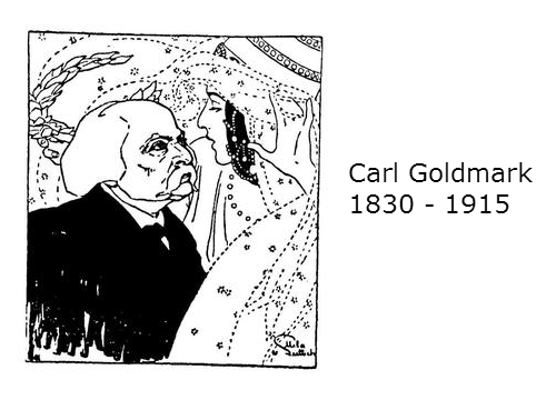 | Carl Goldmark, der Hofkomponist "der Königin von Saba". Karikatur von Mila Luttich, ©Wien Bibliothek. |