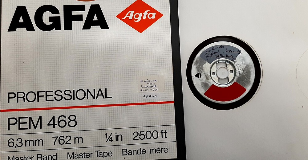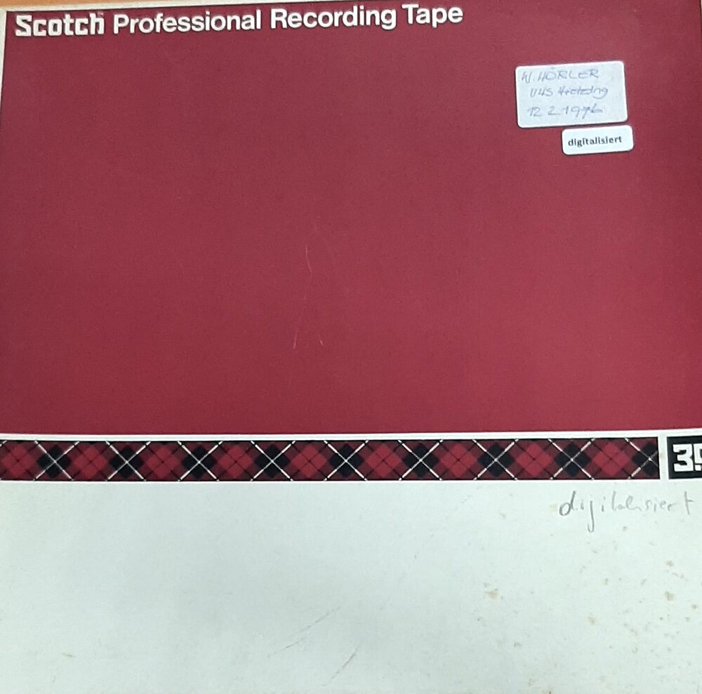 [3] Die Tonbänder wurden mit einem Revox A77 Gerät auf 22cm und 26cm Spulen aufgenommen. Die Tonqualität ist nicht immer überragend. Die in den Tonbändern aufbewahrten Notizen stammen von Walter Hörler (Mitteilung des Schenkers).