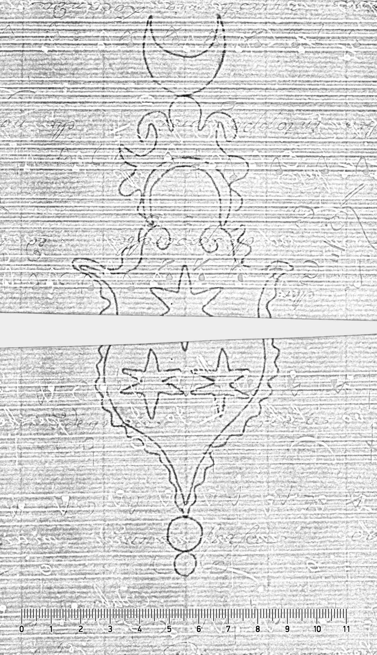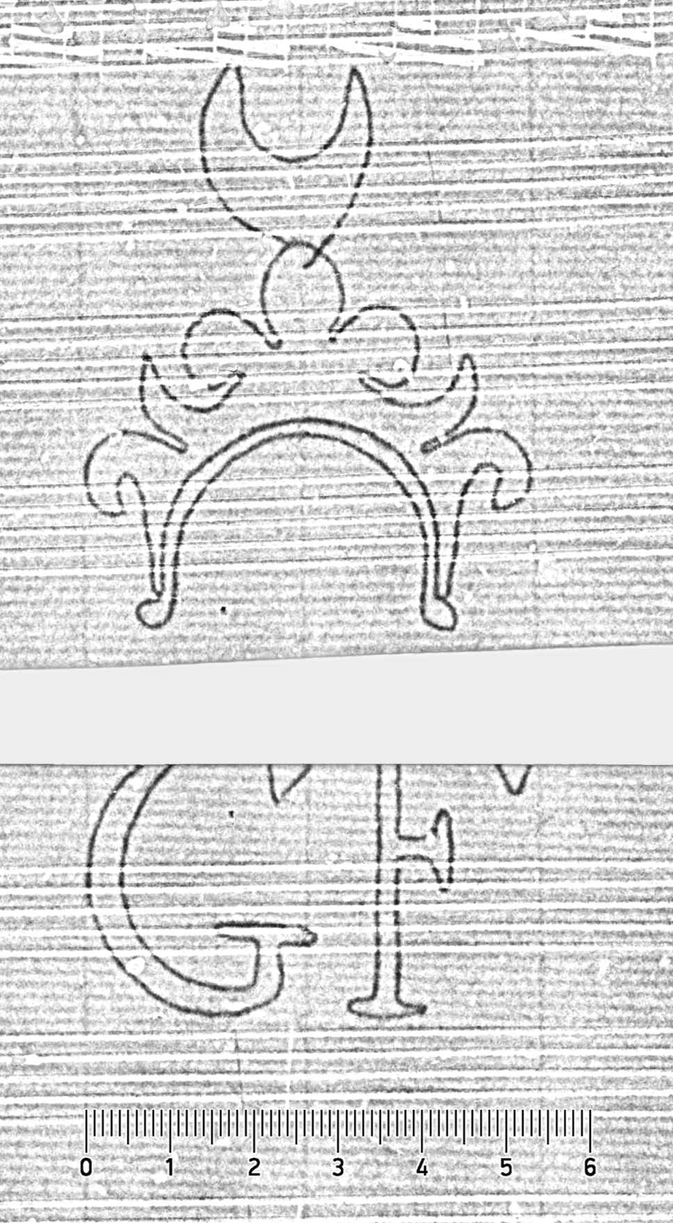 | Watermark | lying crescent / 3 stars (6 points) in coat of arms |