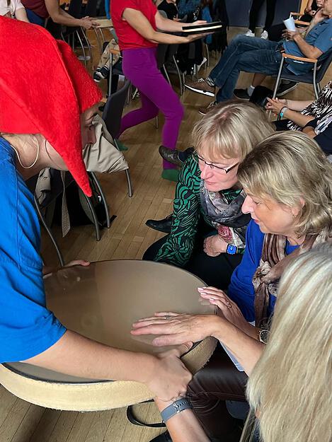 In ihrem Impulsvortrag Hören - Spüren - Spielen: Musizieren mit schwerhörigen und gehörlosen Kindern gab Shirley Salmon Einblick in die Perspektive gehörloser Pädagog_innen und Musiker_innen als Expert_innen und nahm Bezug auf Pionier_innen musikpädagogischer Arbeit mit hörbeeinträchtigen und gehörlosen Kindern sowie auf Forschungsbeiträge zum Thema. Ihre eigenen methodischen Überlegungen und musikalischen Zielsetzungen veranschaulichte Salmon in der praktischen Erarbeitung einer Liedgestaltung unter Einbeziehung der Tagungsteilnehmer_innen.