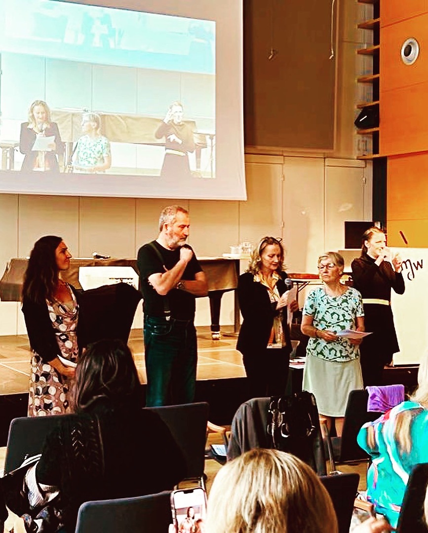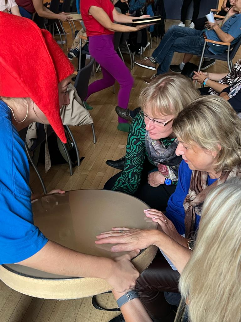 Ausblick auf die spätere Aufführung und Einblick in die Entwicklung des Musiktheaters Ein Waldwicht fliegt in den Oman für hörende, gehörlose und hörbeeinträchtigte Menschen gaben in ihrem Vortrag Agnes Haider als Musikerin und Komponistin und Angelika Hörmann als Regisseurin der 2021 mit dem Aviso-Projekt-Preis ausgezeichneten inklusiven Fassung. Melina Velissaris schilderte ergänzend dazu eindrucksvoll diesen Entwicklungsprozess aus ihrer Perspektive als gehörlose Schauspielerin.