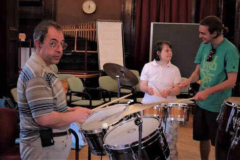 Die Bandmitglieder bekommen vor den Proben jede Woche Instrumental- und Gesangsunterricht von Studierenden der mdw. Momentan werden sie unterrichtet von: