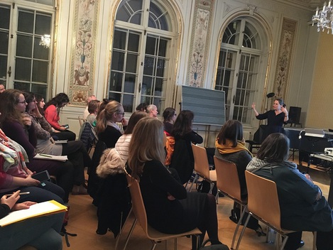 Anne Steinbach gab Einblick in Grundlagen, Methoden und Möglichkeiten der qualitativen Sozialforschung, stellte diese den Methoden und Zielen der quantitativen Forschung gegenüber und ermöglichte Einblick in bereits abgeschlossene Forschungsarbeiten im Bereich EMP. Die sozialwissenschaftliche Kindheitsforschung nahm einen zentralen Platz ein, hier bezog sich die Vortragende auf ihre eigene Dissertation zum Thema "Bedeutungszuweisungen in der Musikalischen Früherziehung - Integration der kindlichen Perspektive in musikalische Bildungsprozesse" (2014). Detailliert stellte sie Beobachtungs-, Interview- und Analysemethodik dar und erläuterte Interviewmöglichkeiten, Zeigehandlungen und Versatzstücke als Musizierbausteine in ihrer Forschungsarbeit mit Kindern.