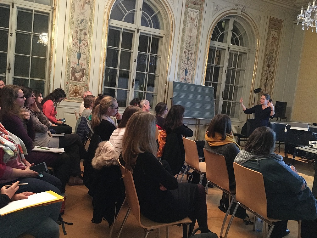 Prof. Dr. Anne Steinbach (vormals Weber-Krüger), Professorin für Elementare Musikpädagogik an der Hochschule für Musik Mainz, war im Rahmen eines Erasmus-Lehrenden-Austausches im November 2019 drei Tage lange zu Gast am IMP. Vor zahlreichem interessierten Fachpublikum aus den Bereichen EMp, RhythmikMB und weiteren interessierten KollegInnen anderer Fachbereiche hielt sie einen Vortrag zum Thema "Forschen in der Elementaren Musikpädagogik".