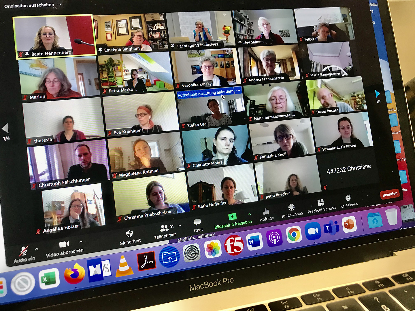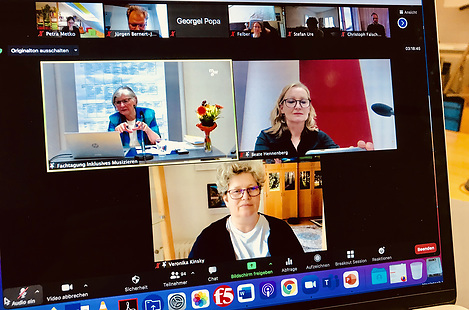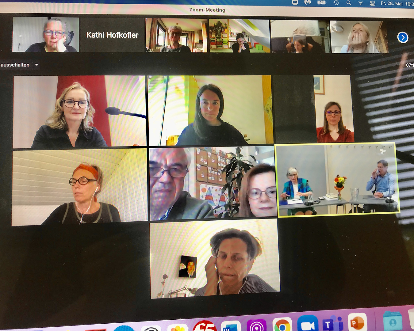 Wir Veranstalter, Beate Hennenberg (mdw), Kathrin Hofkofler (Musikschulen Wien), Helga Neira Zugasti (mdw) und Michael Weber (Musikschulen Wien), hatten uns für eine coronabedingt hybride Durchführung der Tagung entschieden, so erreichten wir 101 Teilnehmende. Das IKM nahm uns am Campus der mdw freundlich auf und Medientechniker Arik Kofranek hatte nicht wenig zu tun, die einzuspielenden Formate und Kanäle zu betreuen. Neben den beiden genannten Institutionen bezuschusste die Tagung auch die Koordinationsstelle für Musikalische Bildung durch Brigitte Weißengruber.