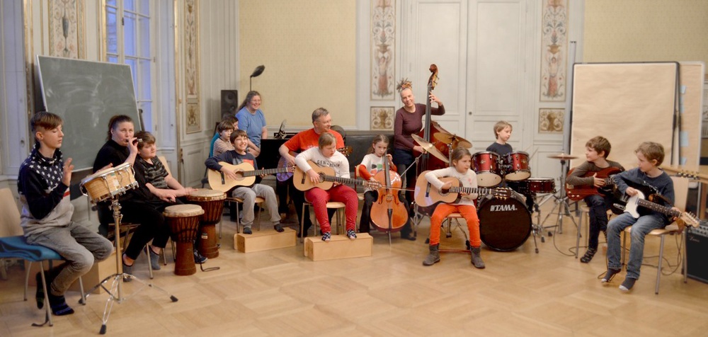 Seit Herbst 2017 gibt es im Kursangebot des Zentrum Elementares Musizeiren und innerhalb der Lehrpraxen des EMp-Fachbereichs eine inklusive Band für Kinder im Alter zwischen 7 und 18 Jahren. In diesem Musizierensemble steht das gemeinsame lustvolle Musizieren im Mittelpunkt, wo jedes Kind sein musisches Ausdrucksbedürfnis mit genau den Möglichkeiten, die ihm zur Verfügung stehen ausleben kann. Ausgehend von unterschiedlichen Impulsen werden ebenso eigenständig entwickelte Improvisationen und Gestaltungen erarbeitet wie auch Ensemblestücke und Lieder quer durch alle möglichen Stile und Kulturen.