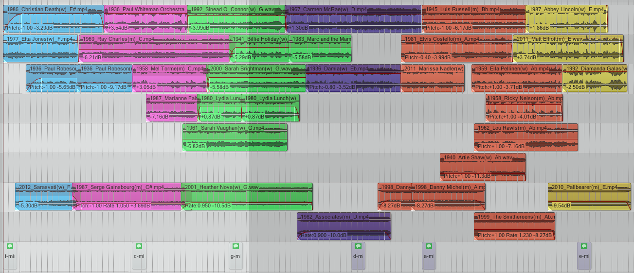 - Grafische Darstellung der sound files aus Marko Cicilianis „LipsEarsAssNoseBoobs (Gloomy Sunday)“