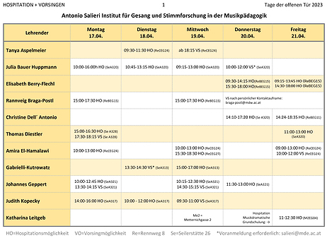 am Institut Antonio Salieri Gesang und Stimmforschung in der Musikpädagogik finden heuer von 17. bis 22. April 2023 statt.