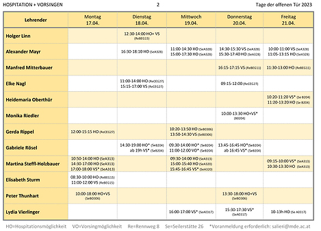 Die Zeiten der einzelnen Lehrenden sind hier zu finden: